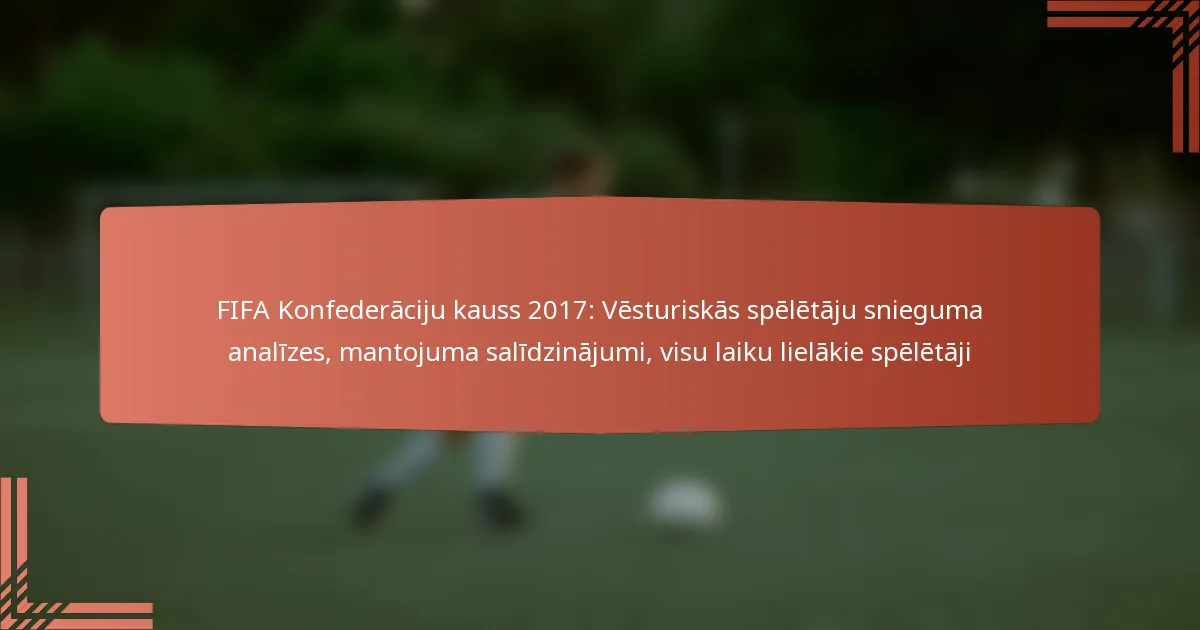 FIFA konfederāciju kauss 2017 bija izšķirošs turnīrs, kas izcēla izcilu spēlētāju sniegumu, veidojot spēļu iznākumus un naratīvus. Šī izdevuma laikā tika demonstrēta ne tikai individuālā izcilība, bet arī iezīmējās būtiska attīstība turnīra mantojumā, atspoguļojot starptautiskā futbola konkurences garu. Visi laiku lielo spēlētāju ieguldījumi šajā pasākumā ir atstājuši neizdzēšamu zīmi sacensību vēsturē.