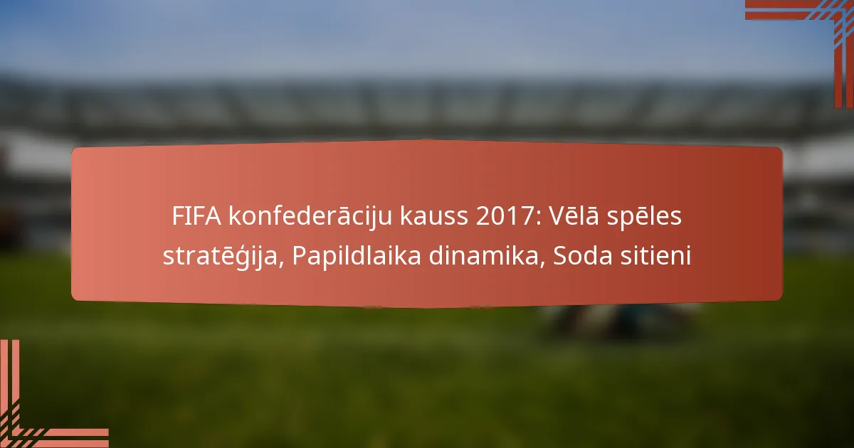 FIFA konfederāciju kauss 2017. gadā parādīja vēlu spēles stratēģiju nozīmi, kur komandas koncentrējās uz kontroli un taktiskām izmaiņām, lai nodrošinātu savas pozīcijas. Kad spēles pārgāja papildlaikā, fiziskā sagatavotība un garīgā izturība kļuva kritiski svarīgas spēlētājiem, lai viņi varētu sniegt labāko sniegumu. Neizšķirta gadījumā soda sitieni kalpoja kā izšķiroša metode uzvarētāja noteikšanai, izceļot spiedienu un prasmes, kas saistītas ar augstas likmes situācijām.