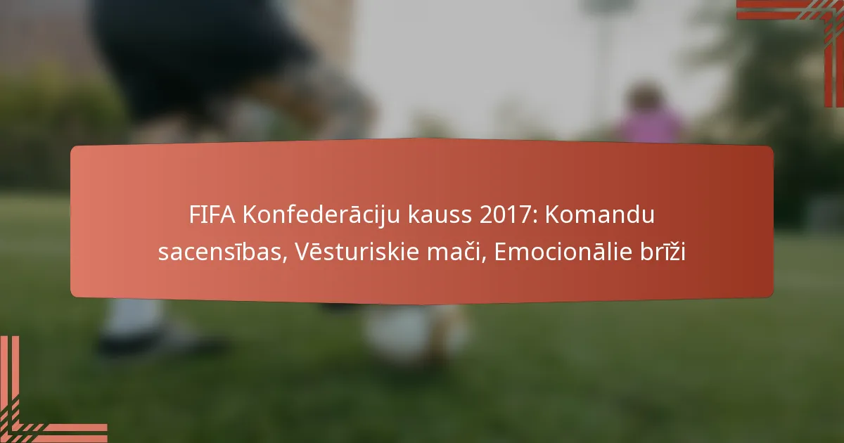 FIFA konfederāciju kauss 2017 bija iezīmēts ar intensīvu konkurenci un pārsteidzošiem spēļu iznākumiem, kas aizrāva fanus visā pasaulē. Ar izcilām spēlētāju izrādēm un dažādiem vārtu guvumiem turnīrs izcēla piedalījušos komandu stratēģisko dziļumu un prasmes, padarot to par neaizmirstamu notikumu starptautiskajā futbolā.