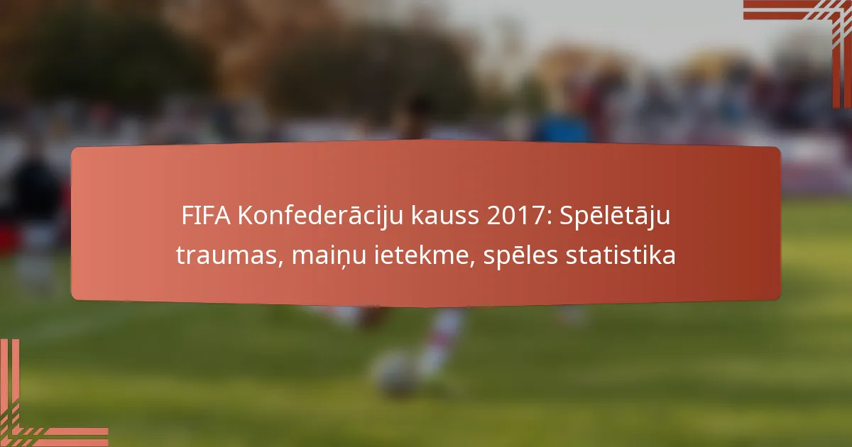 FIFA konfederāciju kauss 2017 piedzīvoja vairāku galveno spēlētāju ievainojumus, kas ietekmēja viņu komandu sniegumu. Ievērojamie ievainojumi ietvēra muskuļu sastiepumus un saišu problēmas, kas ne tikai noveda pie spēlētāju izslēgšanas, bet arī ietekmēja komandu dinamiku un stratēģijas visā turnīra laikā.